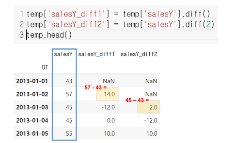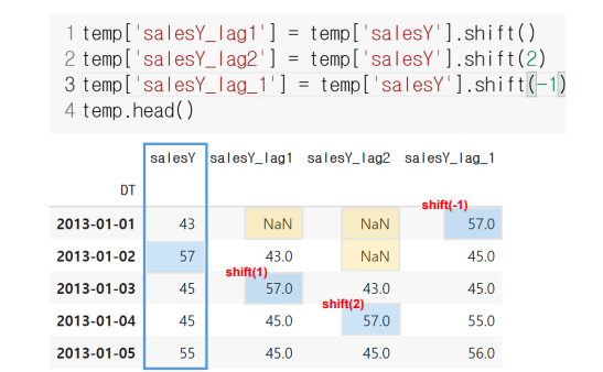 temp['Amt_lag2'] = temp['Amt'].shift(2) # 2행 shift