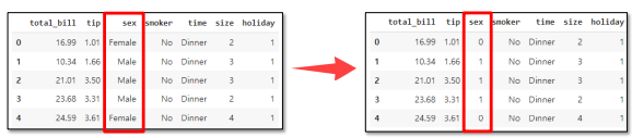 tip['sex'] = tip['sex'].map({'Male': 1, 'Female': 0})