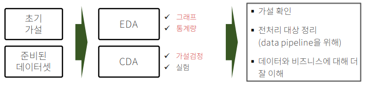 - 문제를 정의하고 요인을 파악하기 위해서 가설을 수립합니다.
